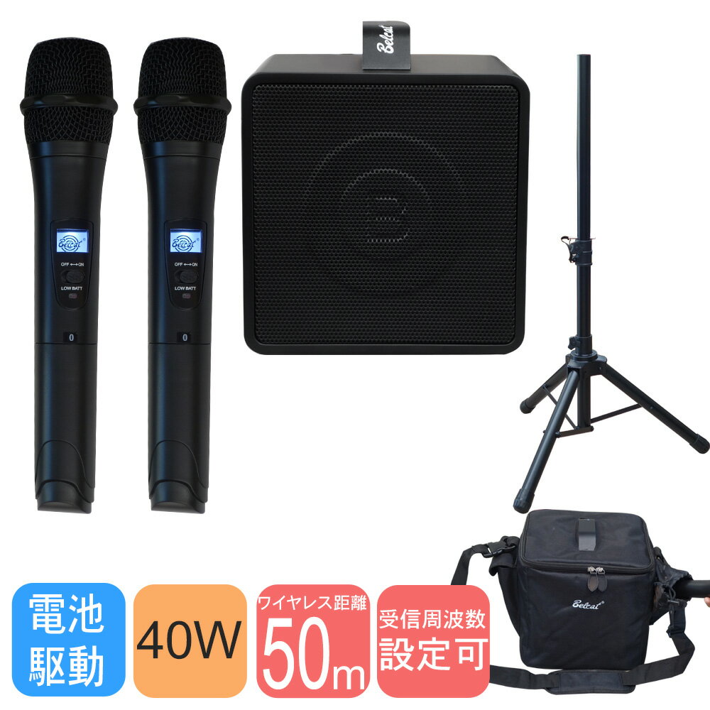 [?]アイコンの意味について セット内容:スピーカー/ソフトケース/ワイヤレスマイク×2/アンテナ×2/スピーカースタンド/スタンド用ケース 店頭販売やトークイベントに最適 拡声器に近い音質で声を効率よく届けます スタッフのコメント: 【セットの特長】 BELCATの出力40Wス ...